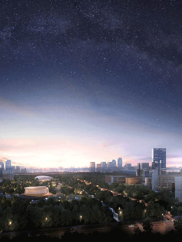 以【申花印月】为原点,一条莫干山路直通武林广场;一条学院路直通黄龙、西湖;一条秋石高架直通钱江新城,从整个交通组织以及空间肌理上奠定杭州主城正芯的格局。