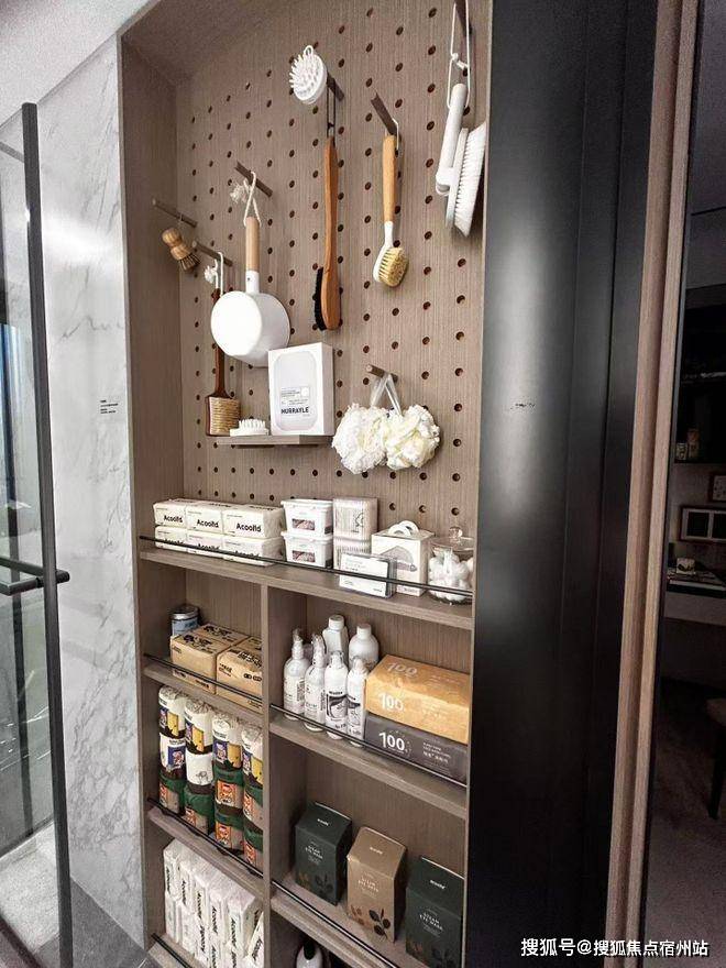 可抽拉的零食柜、厨房抽屉式碗碟拉篮、华润中环置地中心望云售楼处电话☎:✅✅包括卫浴的收纳墙,于细节之处见真章。
