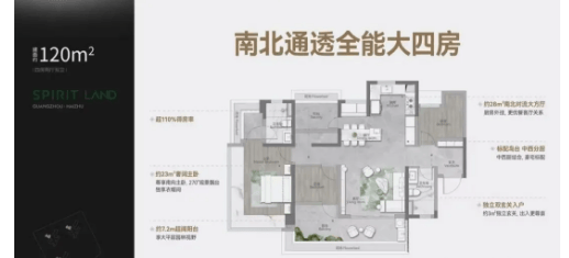:海珠西唯一 100㎡内正四房,7.2 米超长阳台(媲美 140㎡户型),LDKG+X 一体化方厅,可灵活设置亲子区、办公区,实际使用面积约 112㎡,总价 500 万起,适合多孩家庭;