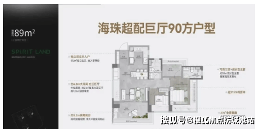 :新规户型设计,实测得房率 110%-115%,以 89㎡户型为例,实际使用面积约 98㎡,较同面积段老户型多出约 9㎡,相当于拓展出独立书房,空间效能优势冠绝海珠西;