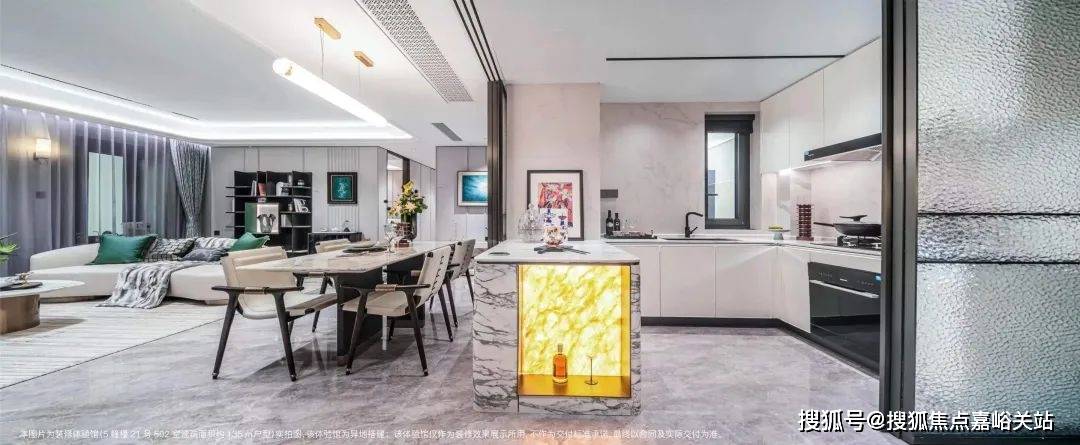 5. 整体采用了海派的装修风格,例如更耗时更费钱的带弧度的半圆形吊顶!以及当大部分项目还在用长虹玻璃时,招商臻境在厨房的三轨道移门处使用了水波纹玻璃,更具奢华感!这样的细节上次还是在看3000万级别的豪宅时才看到!