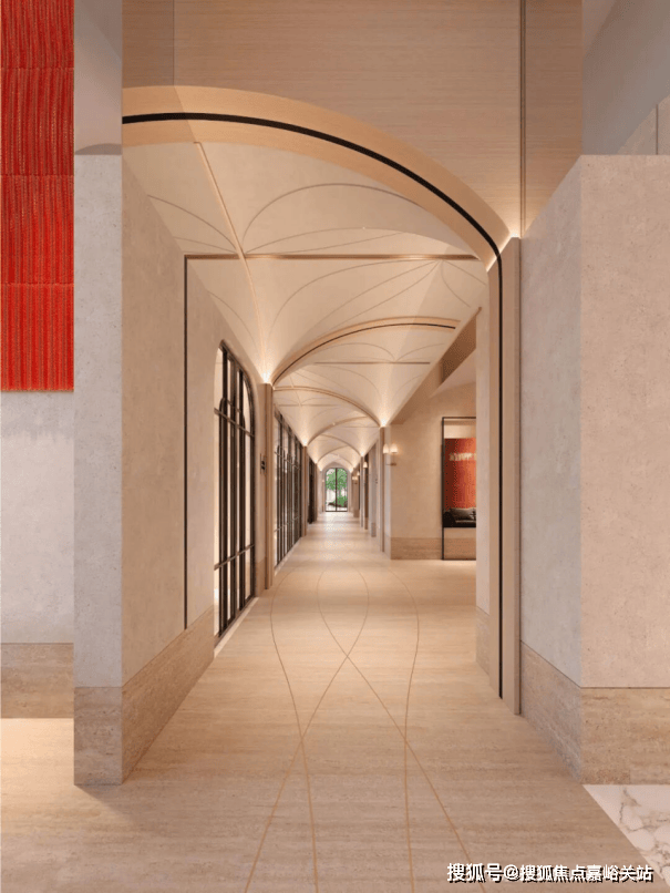 约50m面宽的气派门头+酒店式入户大堂: 打造艺术格调归家。入户大堂由吴滨设计,呈现“天圆地方”的效果,方正的线条勾勒出空间的规整与大气,与顶部的圆形形成刚柔并济的视觉平衡,让每一97国际游戏app入口次归家都成为一场尊贵的礼遇。