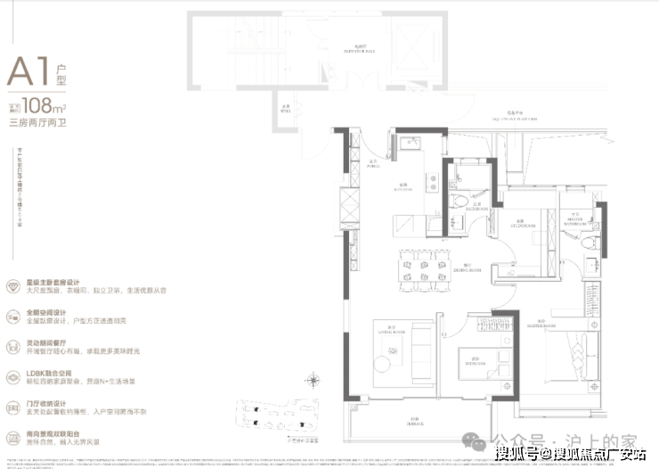 建面约108㎡的三房两厅两卫,总价约700万起,门槛友好,年轻家庭置业中环的不二选择。