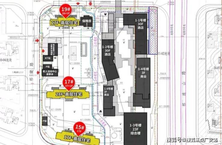 根据设计方案显示,该地块拟建3栋17-28F高层住宅、2栋30F酒店、1栋23F综合楼以及2栋3F商业;同时地块北侧设置有空中连廊,与北侧07-01地块万象系商业连通!