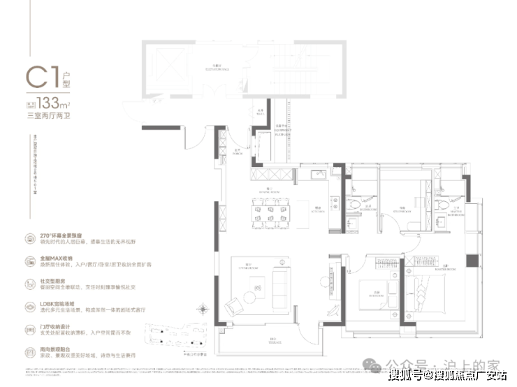 133㎡的四房产品是项目的明星户型,板块内以及整个中环难得的改善型作品。