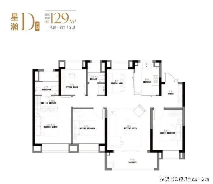 建面约123-129㎡真四房,这个户型的南向面宽和尺度感堪比一般的别墅。