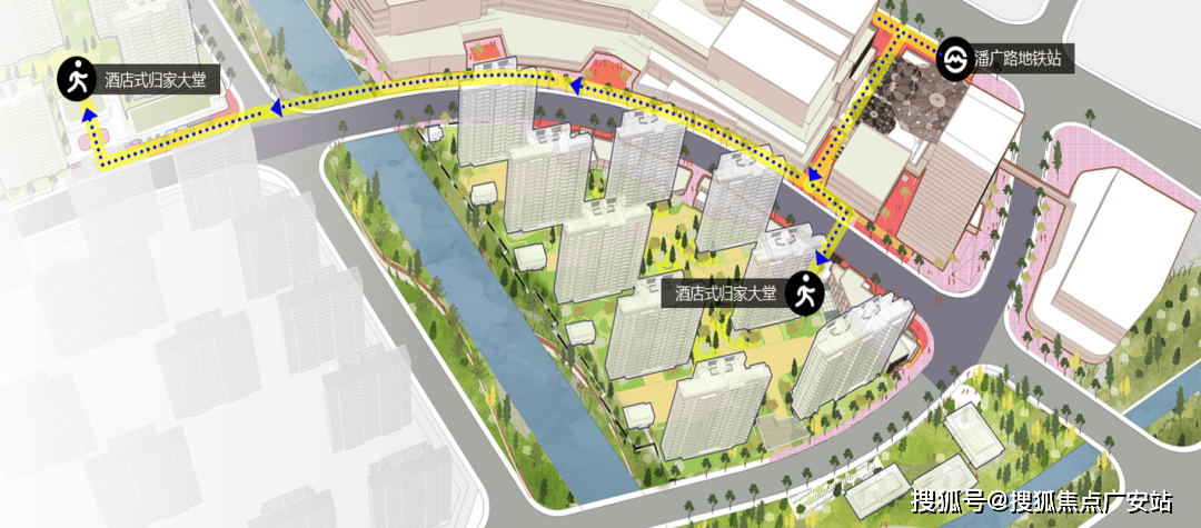 项目联通城市轨交、快速直达主干道和开放街区步道,打造三重立体路网体系,构筑组织多样性,实现快耍慢活的生活节奏,并借此串联起TOD大城里的商业、公园、街区、广场、地铁、酒店,六大场景。