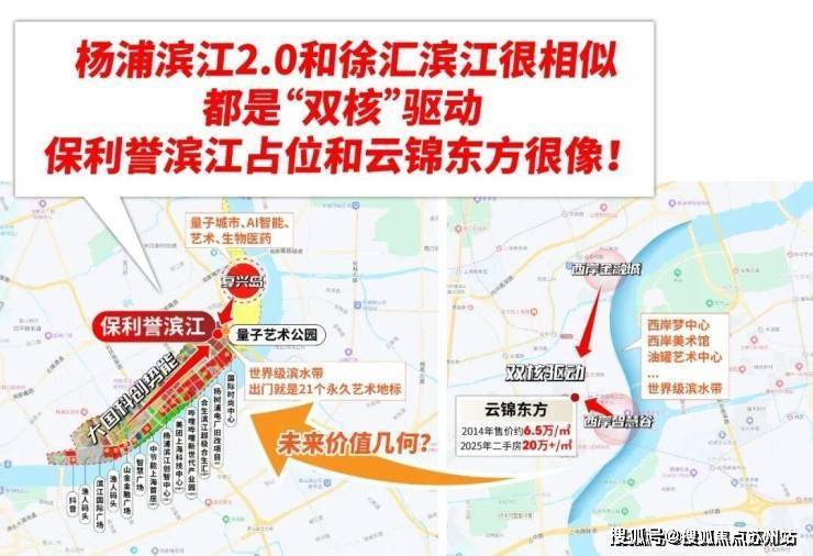 保利誉滨江售楼处电话☎:值得一提,保利誉滨江在杨浦滨江2.0的位置,与云锦东方如出一辙——二者均处于“双核辐射的中心点”。你要知道云锦东方2014年售价约6.5万/㎡,如今已突破20万+/㎡。