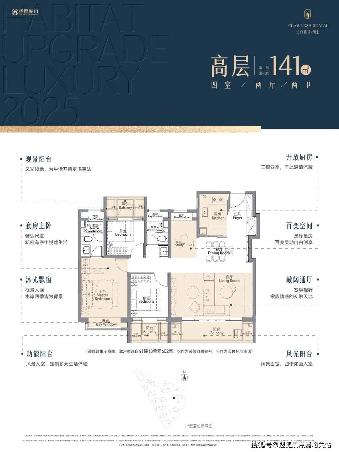 2、延伸空间拉满!主卧套房飘窗+步入式衣帽间+独立卫浴拥有2个飘窗,尊崇感与实用性拉满!三阳台+花池+4飘窗结构,有效延伸空间,实际使用空间更奢阔!