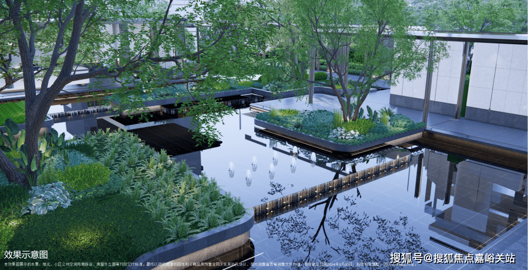 摩登水院,华灯映入水池,映出池底黑金沙的金光色,雍容华贵。☑️☑️招商臻境售楼处电话:☑️☑️