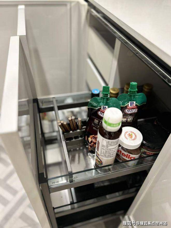 可抽拉的零食柜、厨房抽屉式碗碟拉篮、华润中环置地中心望云售楼处电话☎:✅✅包括卫浴的收纳墙,于细节之处见真章。